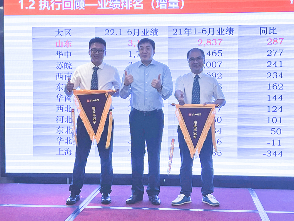 林建雄董事長為增長率冠軍和達成率冠軍頒發(fā)錦旗