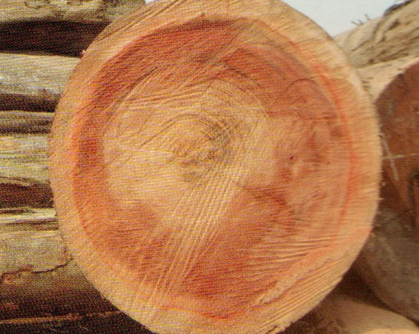 心邊材區(qū)別不明顯,心材粉紅褐色至紅褐色。邊材色稍淺、生長輪不明顯。